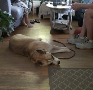 This rescue has a repaired but badly broken leg and won't let helpers near.